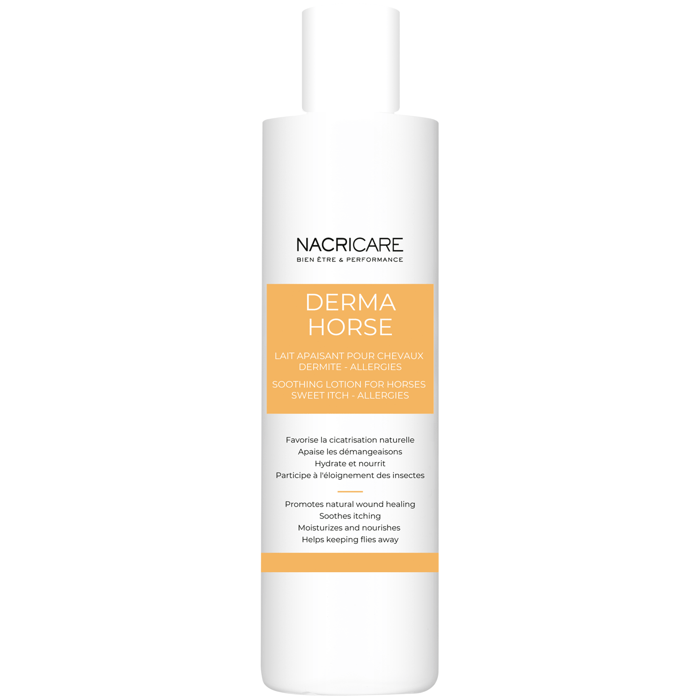 DERMA HORSE – Dermite et Allergies est un lait à base d’ingrédients naturels spécialement conçu pour répondre aux problèmes de dermite estivale (DERE) et d’allergies cutanées chez le cheval.